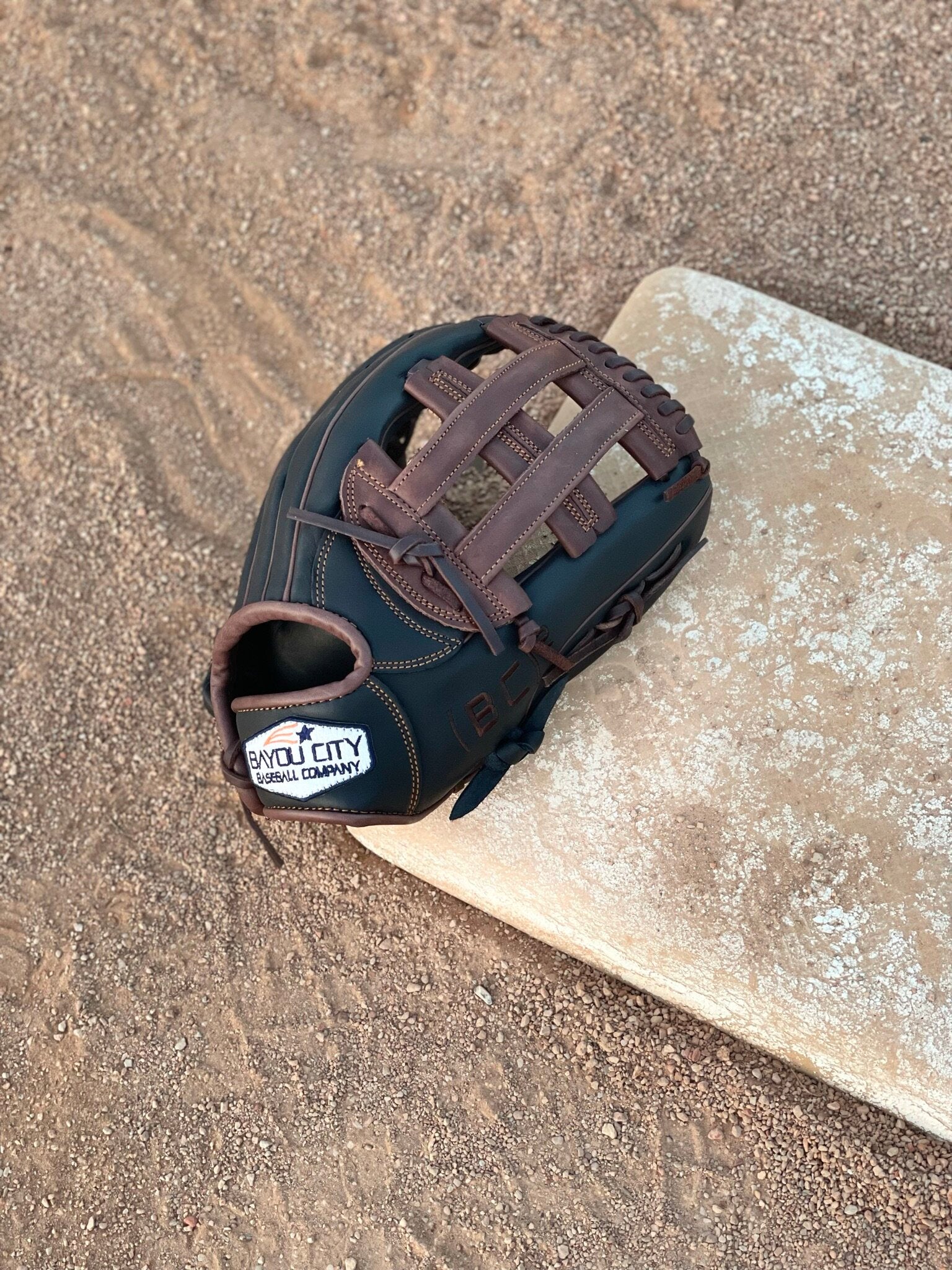 12.75in Black with Dark Brown Webbing, Binding, Welting, Stitching, and Lacing